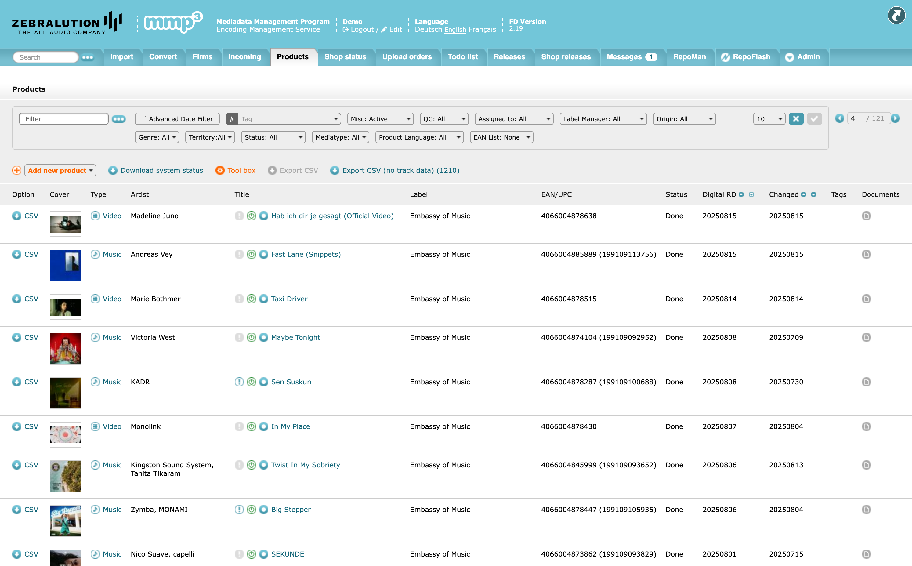 Fast, efficient and focused on the goal. With us as your digital logistics partner, you can send your music, video and audiobook content all around the world. We’ve got the right technology, the right expertise and the right know-how for your business. With over 100 associated trade partners, we ensure that every product ends up at your specific contractual partner. Our quality is industry-recognized, which is why Spotify recommends EMS as delivery platform (Preferred Provider) and Apple lists us an encoding house.